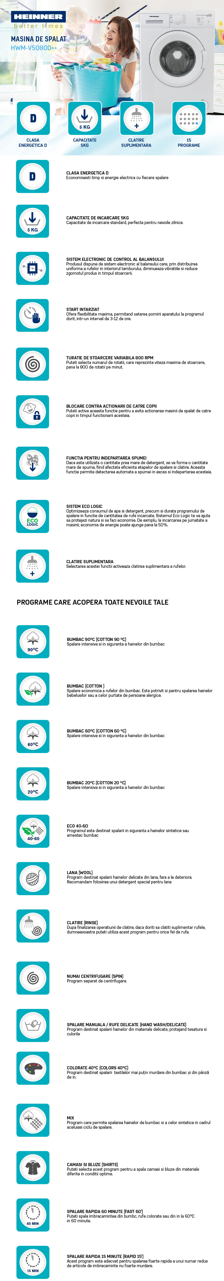 Masina de spalat vase Independenta Heinner HDW-FS6062WE++, 12 Seturi, 6 programe, Clasa E, 60 cm