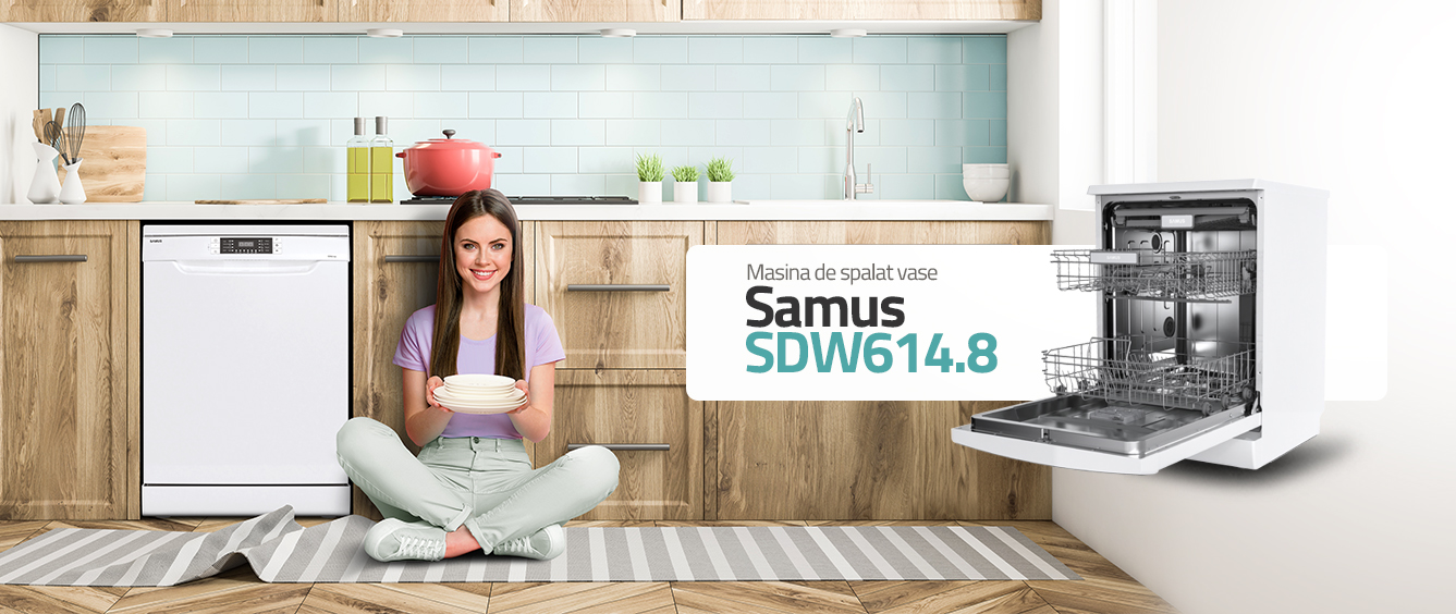 Uita de momentele petrecute in fata chiuvetei pentru a spala vasele si aloca-ti tie mai mult timp liber. Masina de spalat vase Samus face treaba in locul tau. Vasele tale se vor spala mai usor, iar rezultatele vor fi pe masura.