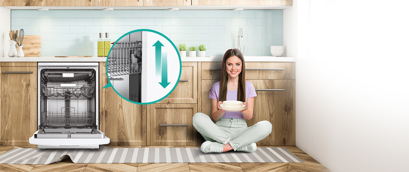 Te bucuri de flexibilitate de fiecare data cand ai vase de spalat! Prin ridicarea cosului superior, se creeaza mai mult spatiu in partea inferioara pentru vase mai inalte, cum ar fi oale, tavi de copt sau tigai mari. Daca se coboara cosul, se pot plasa in partea de sus obiecte mai inalte, cum ar fi pahare de vin sau cupe de dimensiuni mari.
