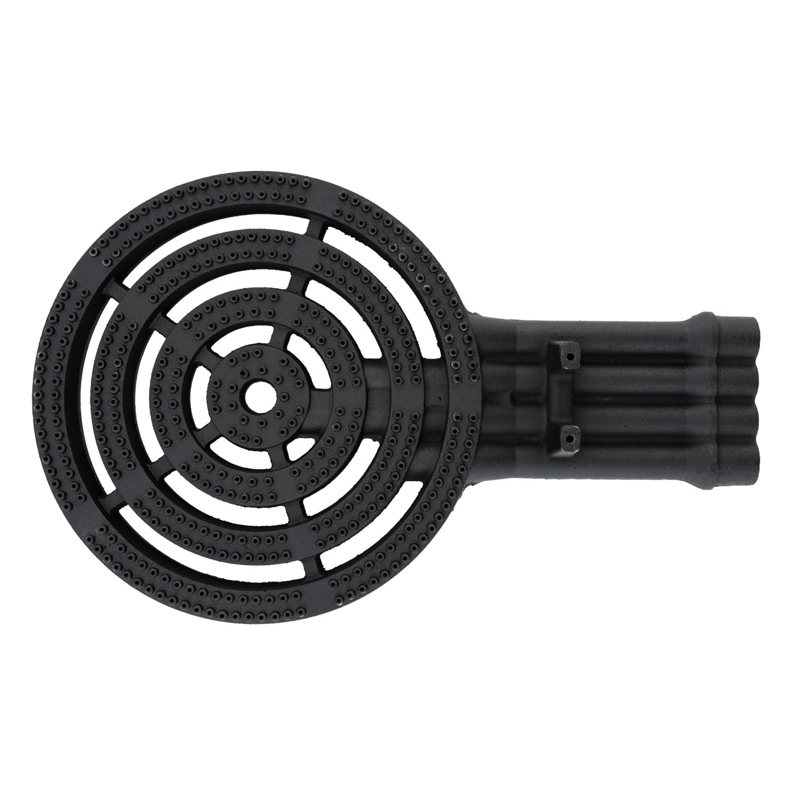 Arzator/Pirostrie cu 4 inele, R04, gaz, propan-butanArzator Pirostrie Elefant TSGB08-TC cu patru inele din fonta pentru utilizare in spatiile exterioare camping gradina curte. Alimentarea cu gaz se face prin duza cu valve de la capatul arzatorului la care se poate conecta butelia. Folositi un kit cu ceas pentru GPL. Acest model este prevazut cu trei inele si trei orificii tubulare. La alegearea utilizatorului se poate opta pentru utilizarea unu singur inel blocand accesul gazului in celelelte doua. Fiecare dintre cele trei duze de alimentare poate fi inchisa. Suplimentar este necesar de reglat debitul de aer care patrunde in teava. Aerul mentine flacara si trebuie reglat pana obtineti o flacara galbena. Daca aceasta devine albastra largiti spatiul de patrundere a aerului prin desfiletarea piulitelor in forma de disc de pe duze.