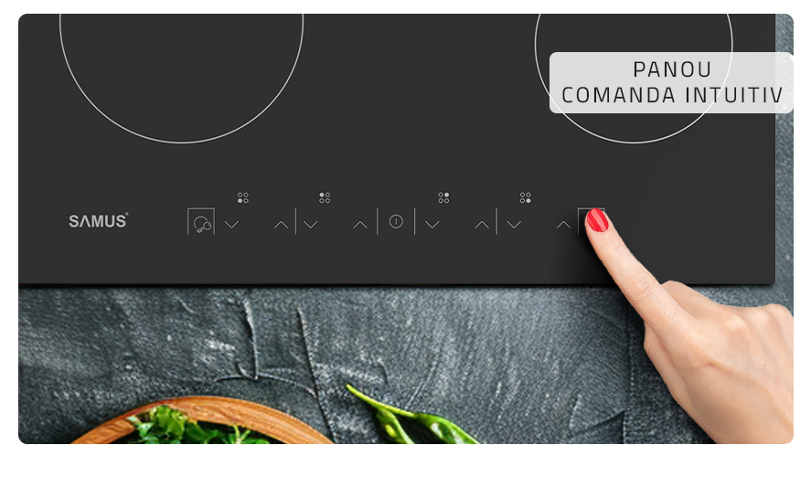 Panoul de comanda Touch Control al plitei este extrem de intuitiv, printr-o simpla atingere putand fi setat arzatorul dorit cat si treapta de putere dorita a acestuia.
