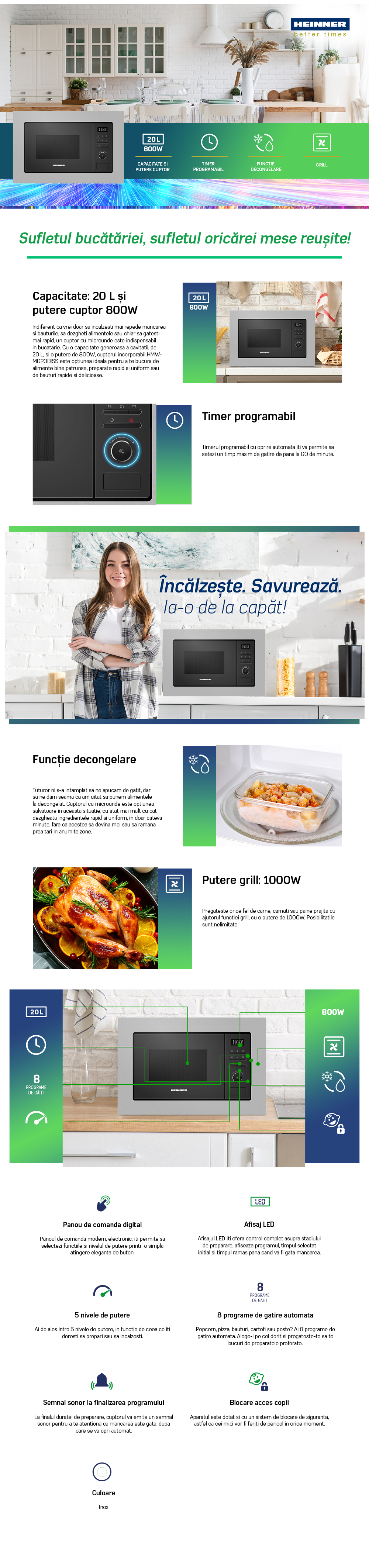 HEINNER HMW-MD20BISS – soluția ideală pentru gătit rapid, eficient și elegant!