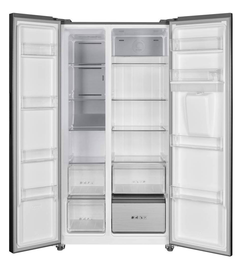Side by Side Heinner HSBS-HM592NFDXWDE++, 592L, 2 Uși, Răcire No-Frost, Congelator 225L, Frigider 367L, Compresor Inverter, Display Touch, Dozator Apă, Clasă energetică E, Inox Antracit