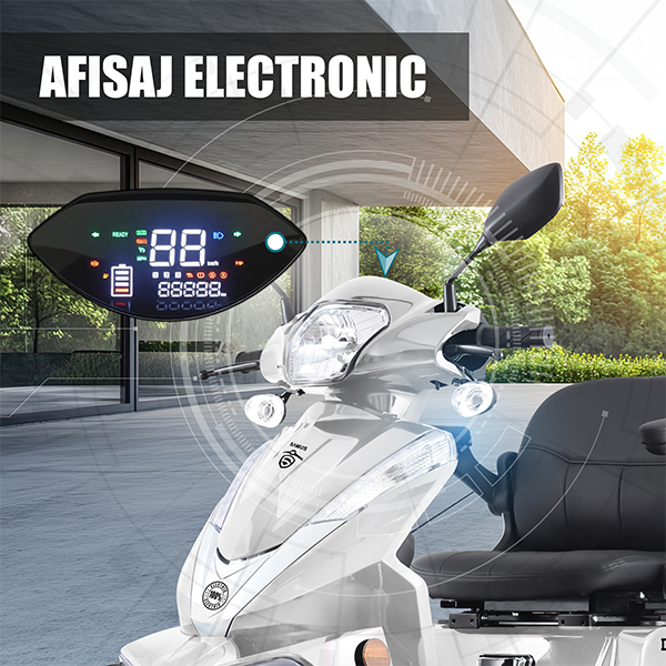 Cu afisajul electronic integrat, cvadriciclul Samus iti ofera informatii esentiale in timp real: viteza, nivelul bateriei, semnalizari si alte functii de baza. Ecranul este clar, intuitiv si usor de citit atat ziua, cat si noaptea, ceea ce iti permite sa monitorizezi rapid starea vehiculului in timpul deplasarii.