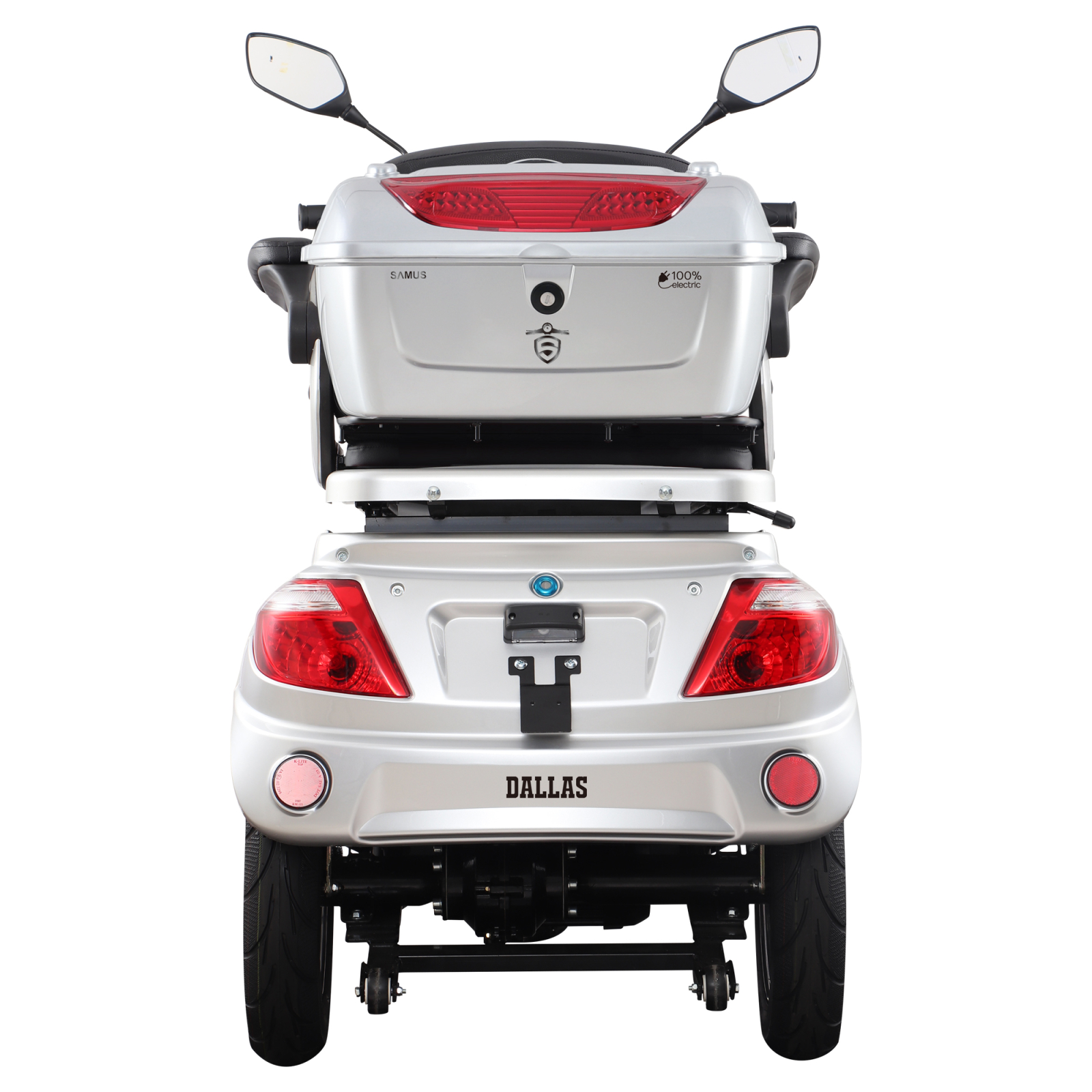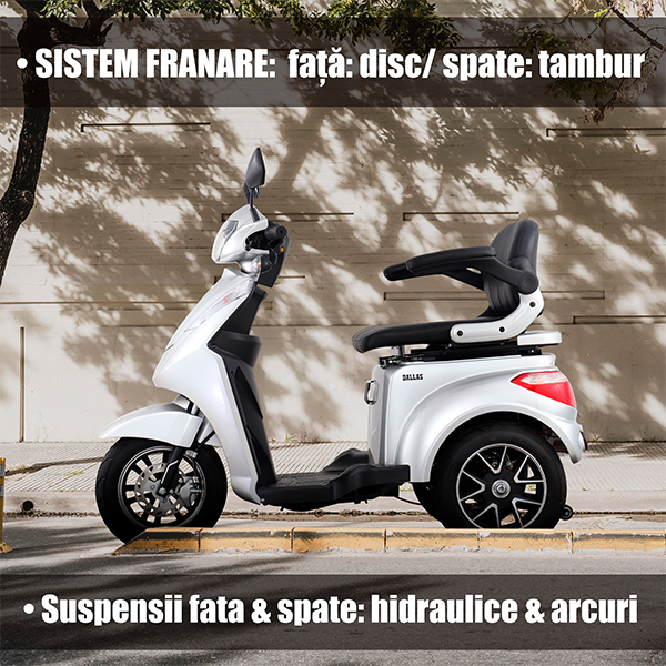 Samus Dallas are sistem mixt de franare (disc fata, tambur spate) pentru opriri sigure. Suspensiile hidraulice cu arcuri absorb socurile pe orice drum. Ofera confort sporit in oras sau pe teren denivelat. Stabilitate si echilibru la fiecare deplasare.