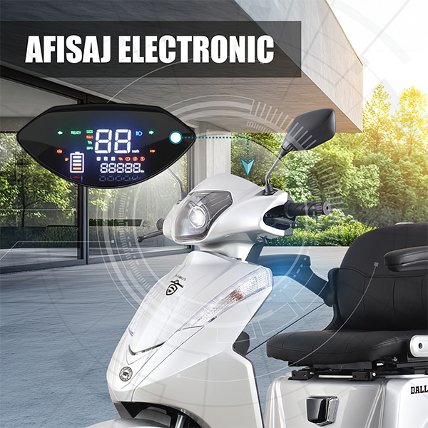Cu afisajul electronic integrat, triciclul Samus iti ofera informatii esentiale in timp real: viteza, nivelul bateriei, semnalizari si alte functii de baza. Ecranul este clar, intuitiv si usor de citit atat ziua, cat si noaptea, ceea ce iti permite sa monitorizezi rapid starea vehiculului in timpul deplasarii.