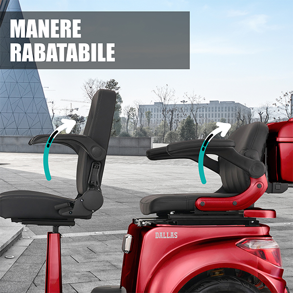 riciclul Samus este echipat cu un maner rabatabil care faciliteaza accesul rapid si sigur in vehicul, oferind o experienta confortabila chiar si persoanelor in varsta sau cu mobilitate redusa. Designul pliabil si ergonomic economiseste spatiu si imbunatateste confortul la urcare si coborare.